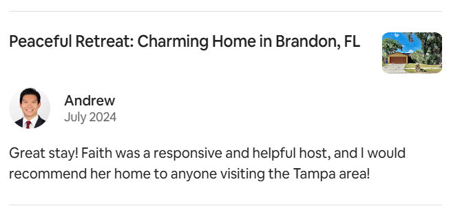 At Faithful Stays, we go beyond just managing short-term rentals—we help hosts maximize their property’s potential, whether that means increasing income, improving guest experiences, or securing higher ratings. If you’re struggling with low reviews, inconsistent bookings, or just don’t have the time or expertise to optimize your listing, I’m here to help.